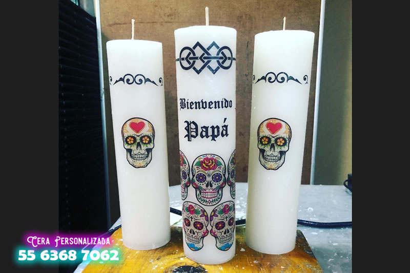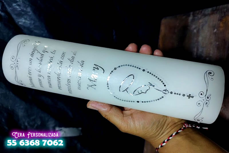 Cirios personalizados en tonos metalico plateado, en alta calidad.