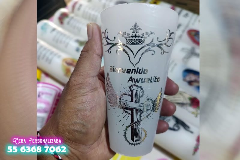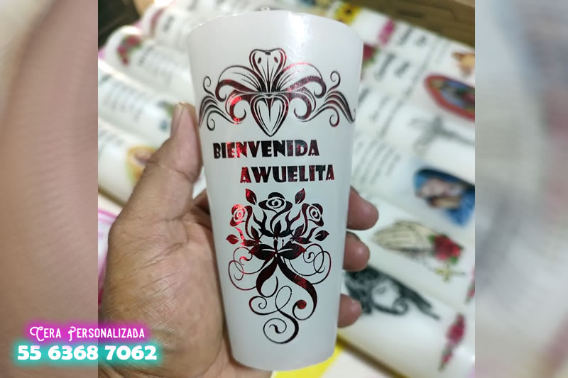 Etiqueta personalizada para vaso de veladora, con foto nombre o frase corta
